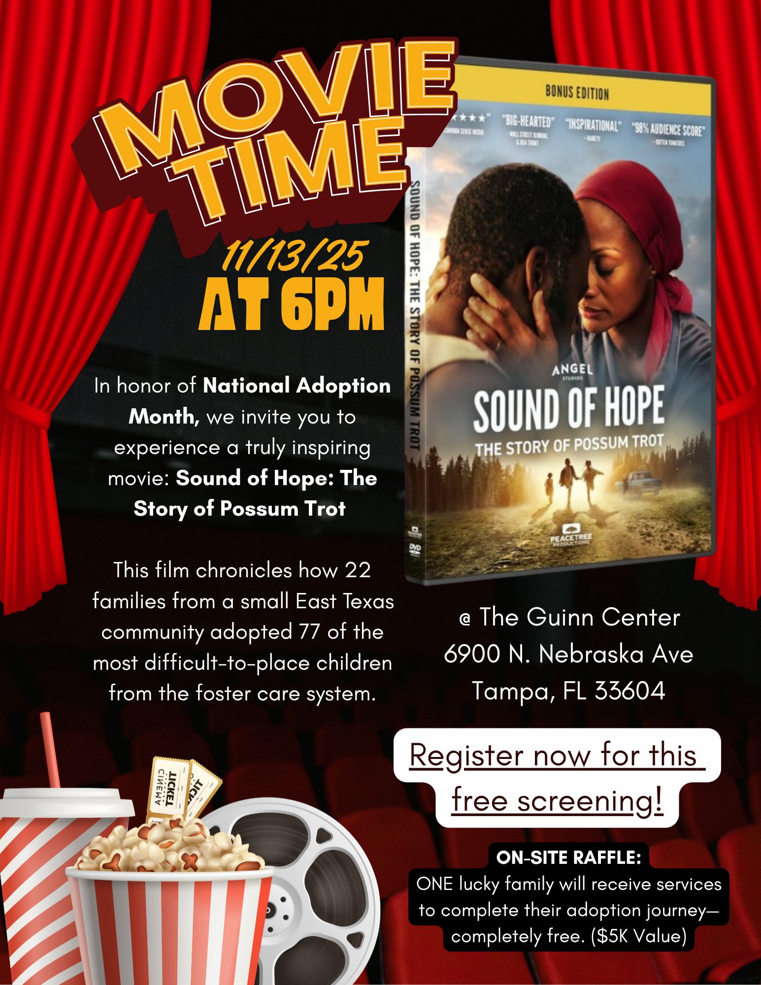 In honor of National Adoption Month, we invite you to a powerful Impact Screening of Sound of Hope: The Story of Possum Trot. This true story follows 22 families from a small church in East Texas who stepped forward to adopt 77 of the most vulnerable children in their community. It’s a remarkable testament to what happens when ordinary people say “yes” to extraordinary love.